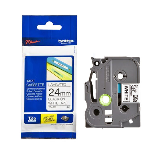 Brother 24mm 原廠 護貝標籤帶 TZe-251/TZ-251 白底黑字-長度8M