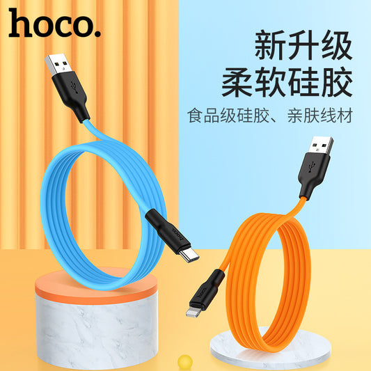 HOCO浩酷 X21硅膠快充線批發5A適用於蘋果安卓Type-C快速充電跨境