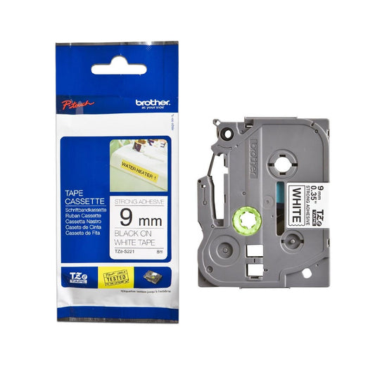 Brother 9mm 原廠超黏性護貝標籤帶 TZe-S221 / TZ-S221 白底黑字 -長度8M