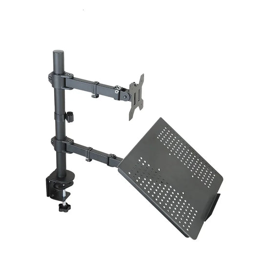 壁掛式坐立兩用顯示器+鍵盤支架,氣體彈簧臂人體工學設計,支持15-27英寸液晶顯示器全向調節