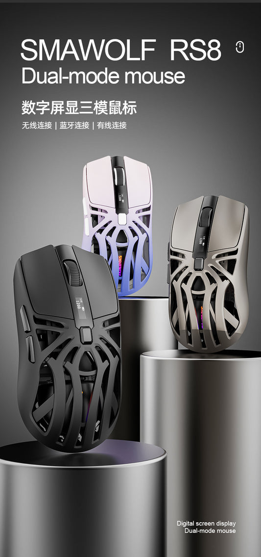 Smailwolf RS8 藍牙無線三模鼠標,輕量化設計,電競遊戲、電腦辦公通用