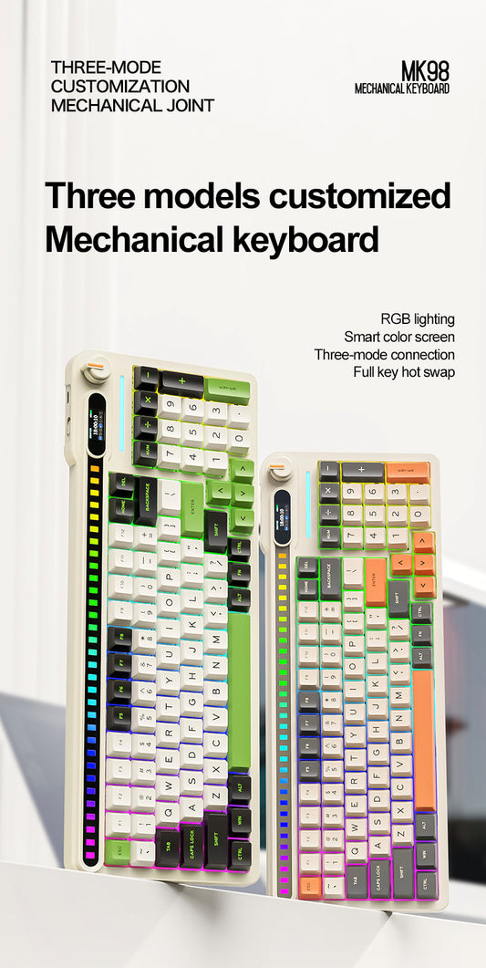 smailwolf MK98 三模 RGB 無線鍵盤,帶屏幕,藍牙客製化,遊戲機械鍵盤,具備拾音燈