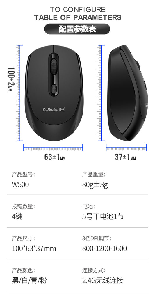 K-Snake W500 無線鼠標是一款適用於臺式電腦、筆記本等多種設備的辦公家用鼠標