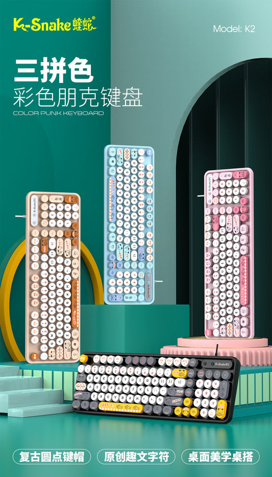 K-Snake K2 有線 USB 鍵鼠套裝,復古朋克風,適合女生,適用於臺式機、筆記本辦公