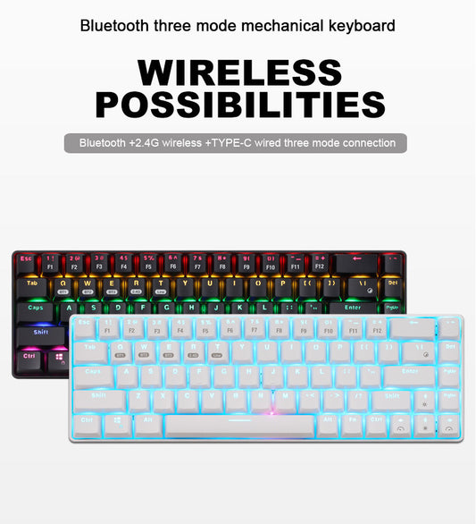 Technology 68 鍵 RGB 無線藍牙機械鍵盤,青軸,三模連接,適配手機、平板、電腦,遊戲辦公皆可用