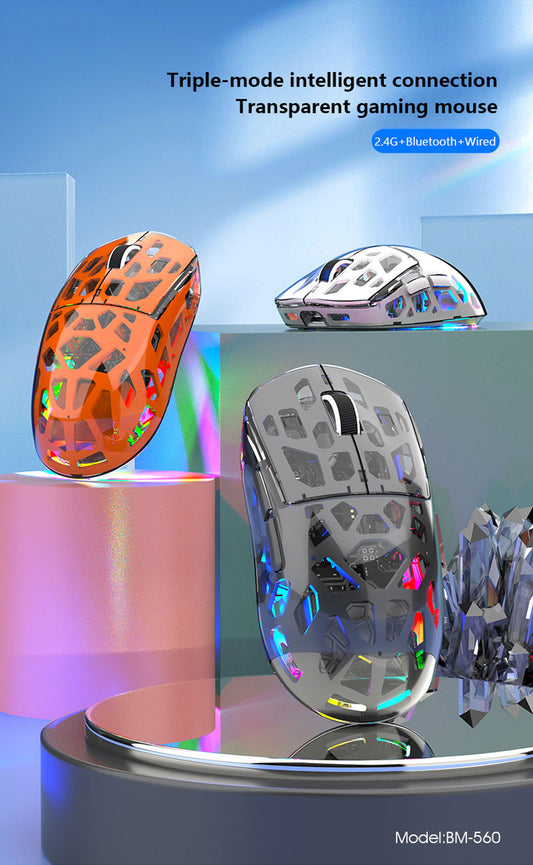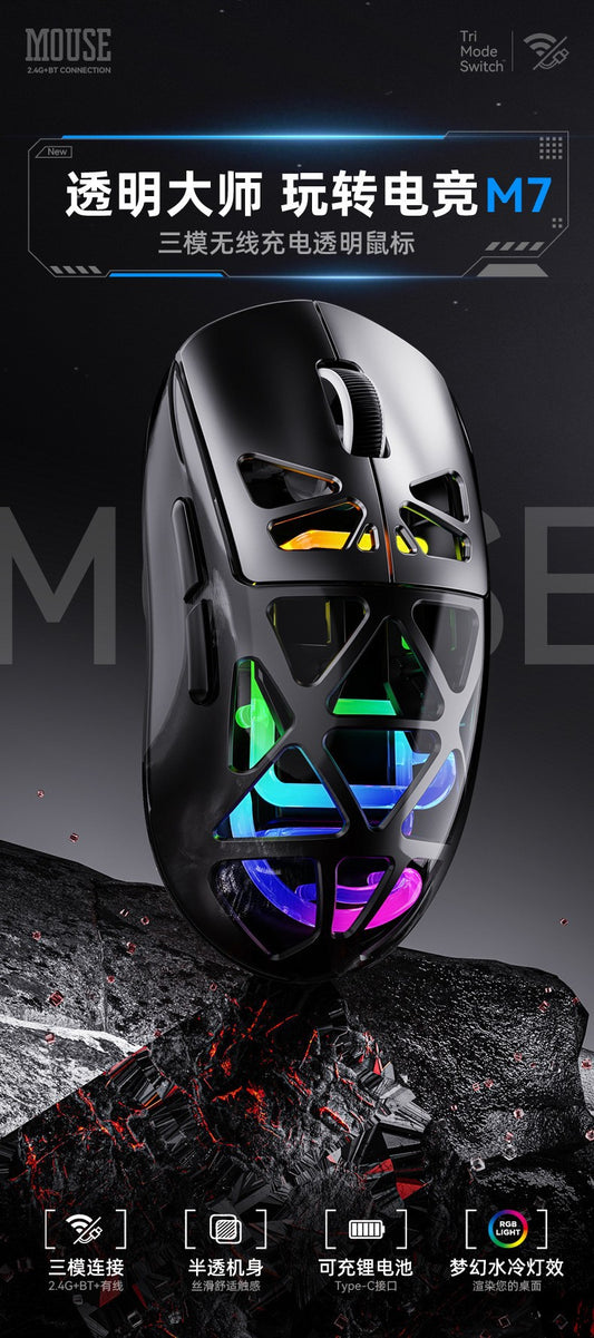 M7 鏤空輕量化洞洞鼠標,支持三模(藍牙、2.4G)無線連接,可充電,適用於電競遊戲,帶 RGB 發光,支持跨境銷售