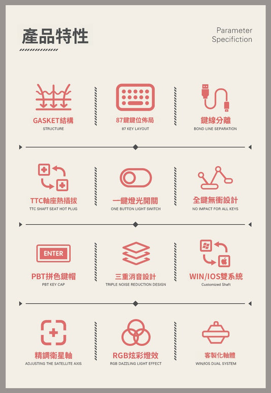 Technology X87 機械鍵盤,87 鍵,有線連接,支持 RGB 燈效,電競遊戲、辦公兩用。具備客製化、熱插拔、鍵線分離特點