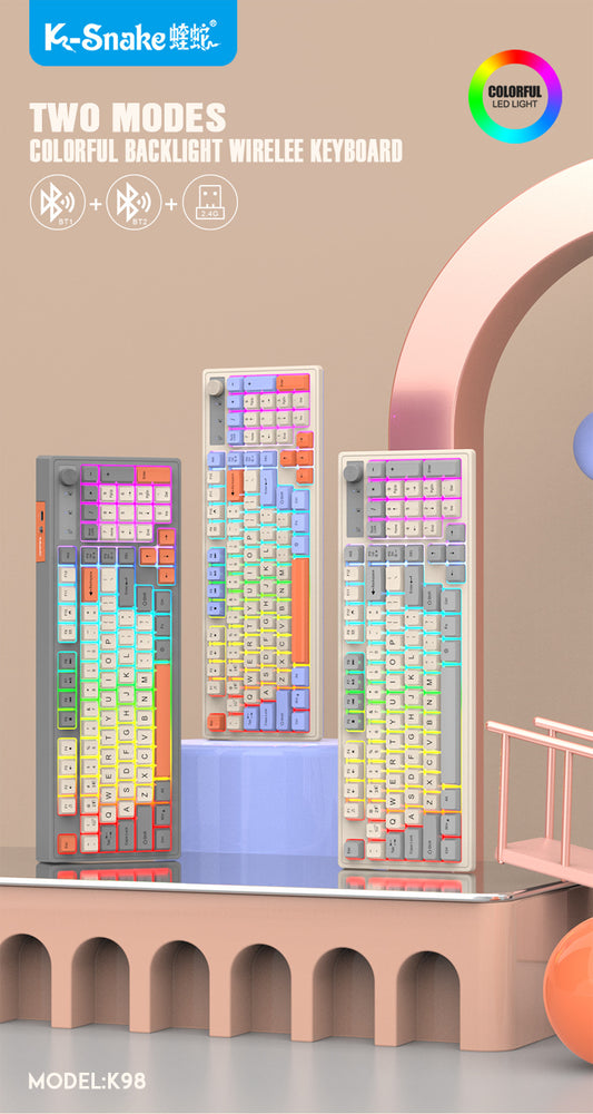 K-Snake K98 藍牙無線雙模鍵盤,機械手感,適用於臺式機、筆記本,辦公商務發光款