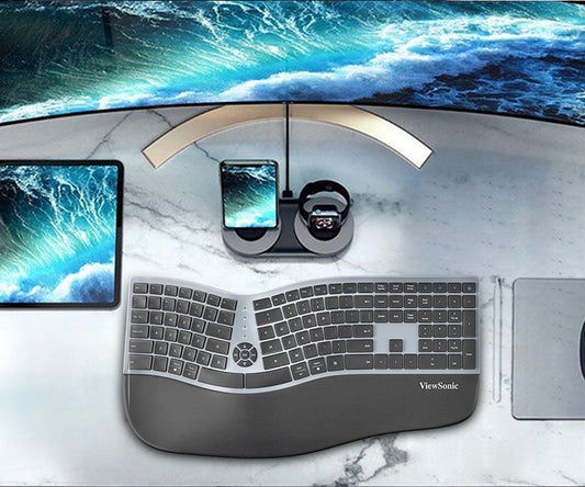 ViewSonic 無線鍵盤,支持藍牙、充電雙模式,具備人體工學設計,適用於筆記本和臺式電腦主機,是多媒體鍵盤