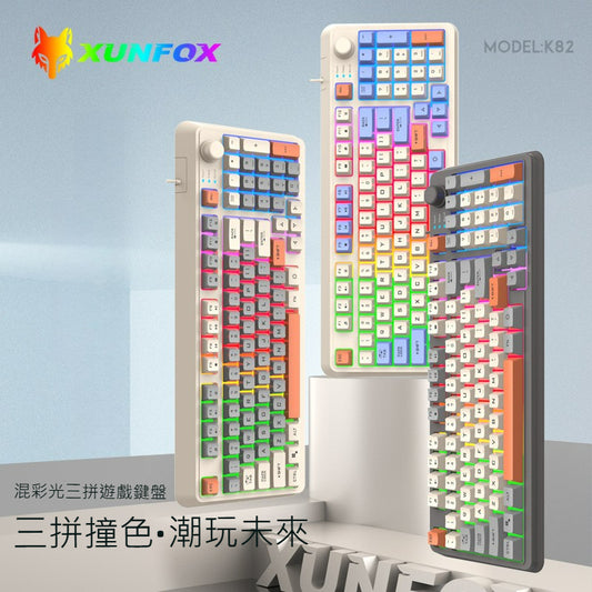 Xunfox K82 遊戲有線鍵盤三拼色發光機械手感