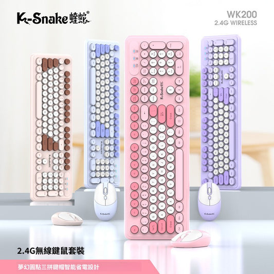 K-Snake WK200 2.4G 無線辦公鍵鼠套裝,靜音,高顏值,專爲女生商務打字設計