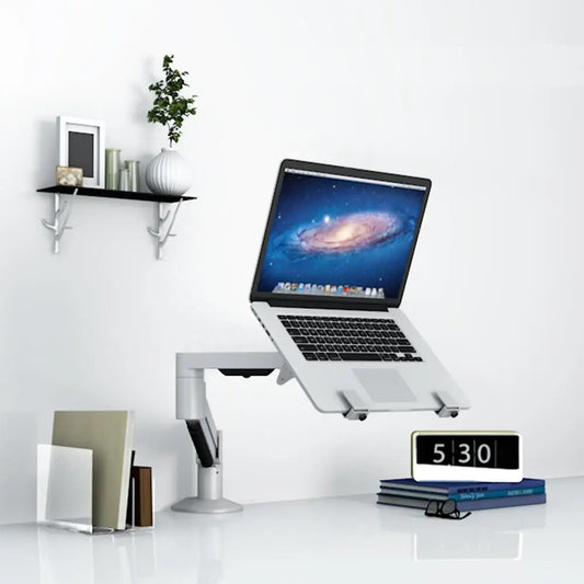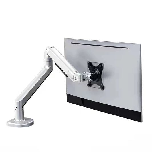 銀色氣動顯示器臂支架!32 吋兼容 + 人體工學 高負載 VESA 桌面款