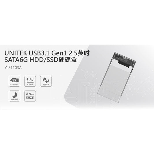 UNITEK USB3.1 Gen1 2.5-inch SATA6G HDD/SSD hard drive enclosure (Y-S1103A)