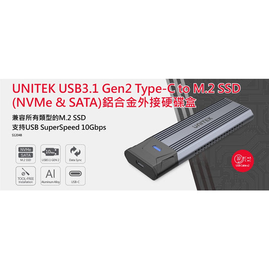 UNITEK USB3.1 Gen2 Type-C to M.2 SSD aluminum alloy external box (Y-S1201A)