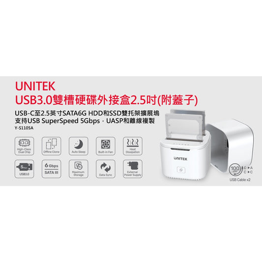 UNITEK USB3.0 dual-slot hard drive external box 2.5 inches (with cover) (Y-S1105A)