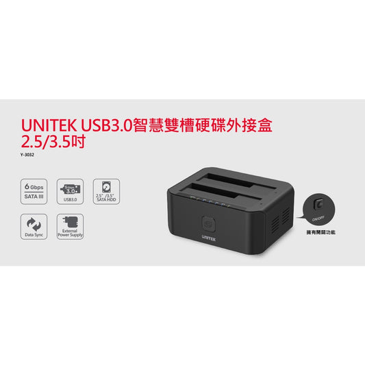UNITEK USB3.0 smart dual-slot hard drive external box 2.5/3.5 inches (Y-3032)