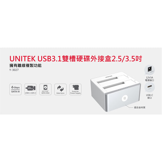 UNITEK USB3.1 dual-slot hard drive external box 2.5/3.5 inches (Y-3027)