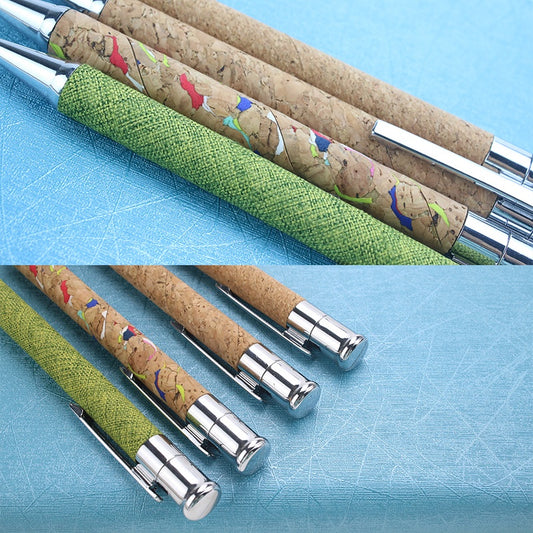 Customized biodegradable environmentally friendly LOGO cork ballpoint pen with metal clip custom LOGO