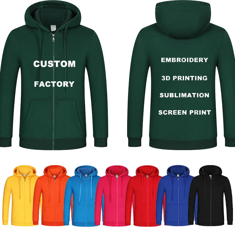 定制 LOGO 連帽衫!60% 棉 40% 滌綸 素色拉鍊款 來樣定做 + 3D 絲網印刷
