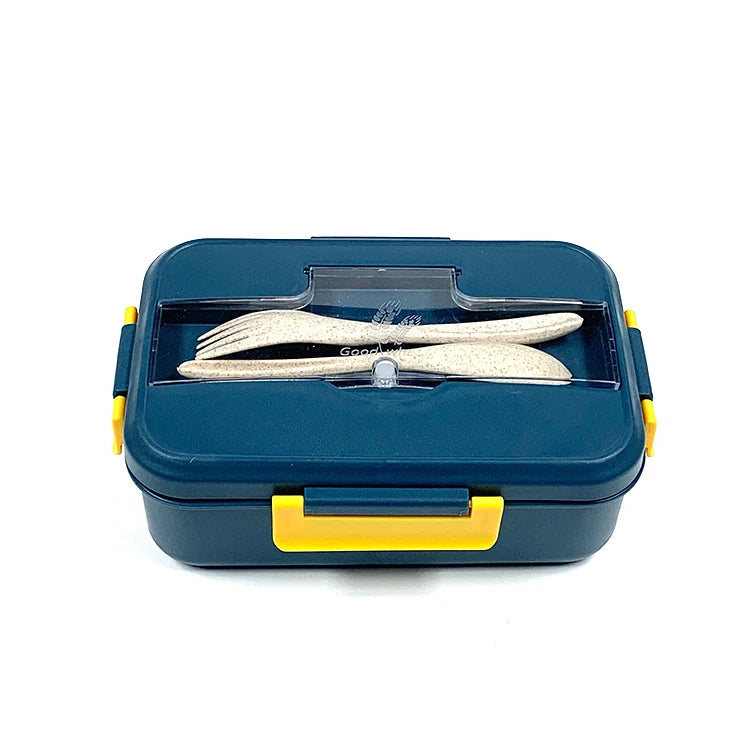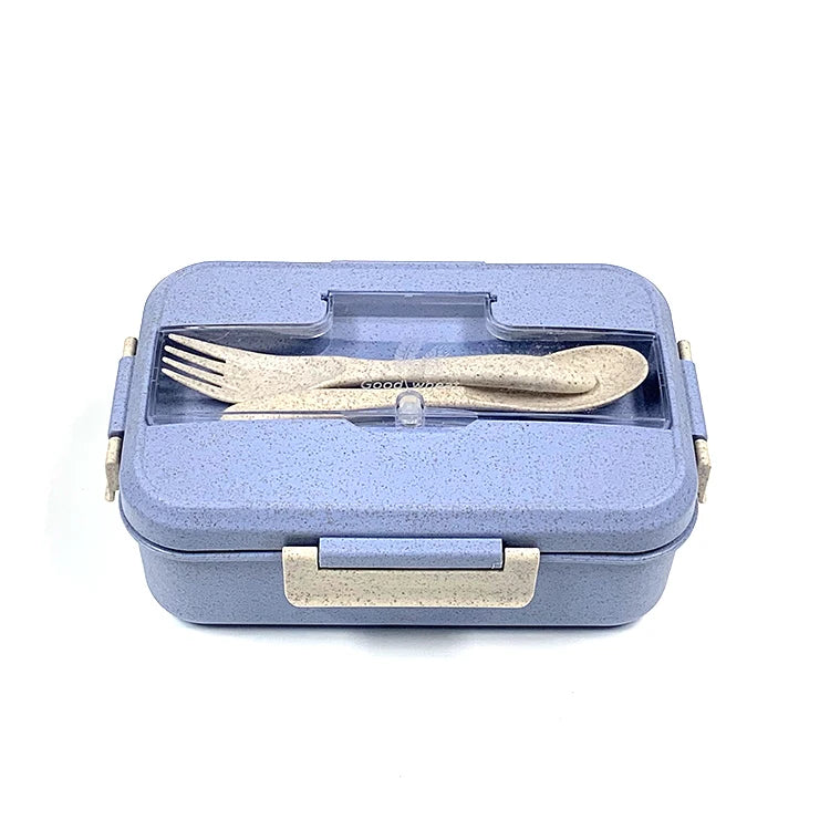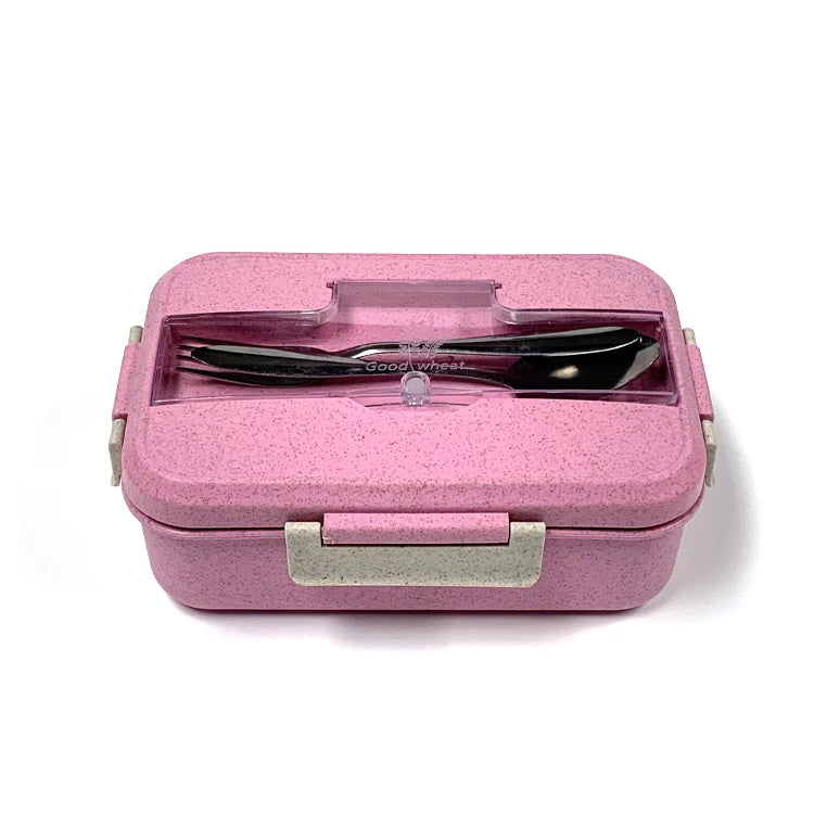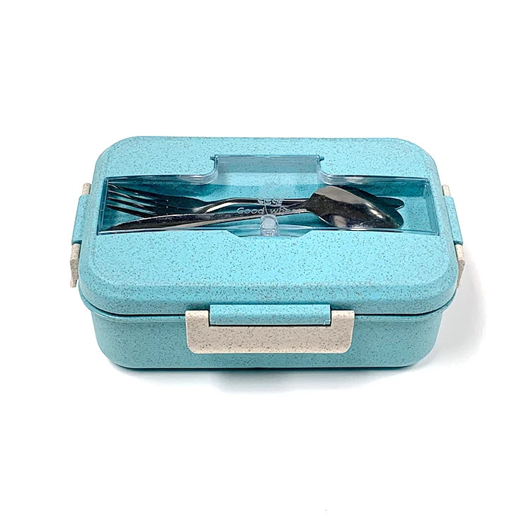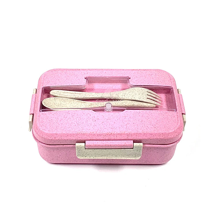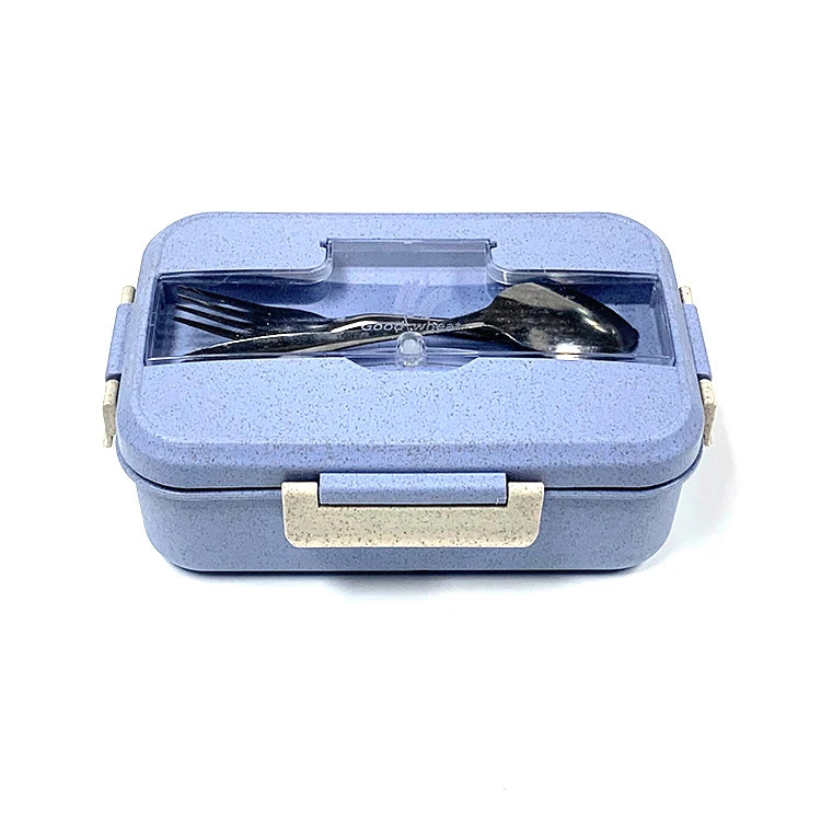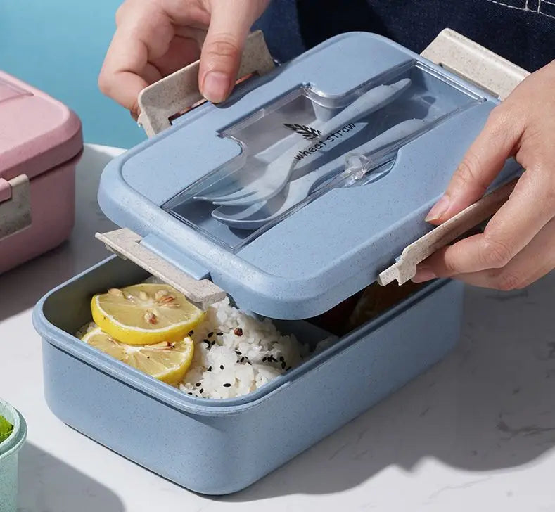 微波爐安全不鏽鋼便當盒 | 三格長方形食品容器 附小麥秸稈可加熱 PP 餐具