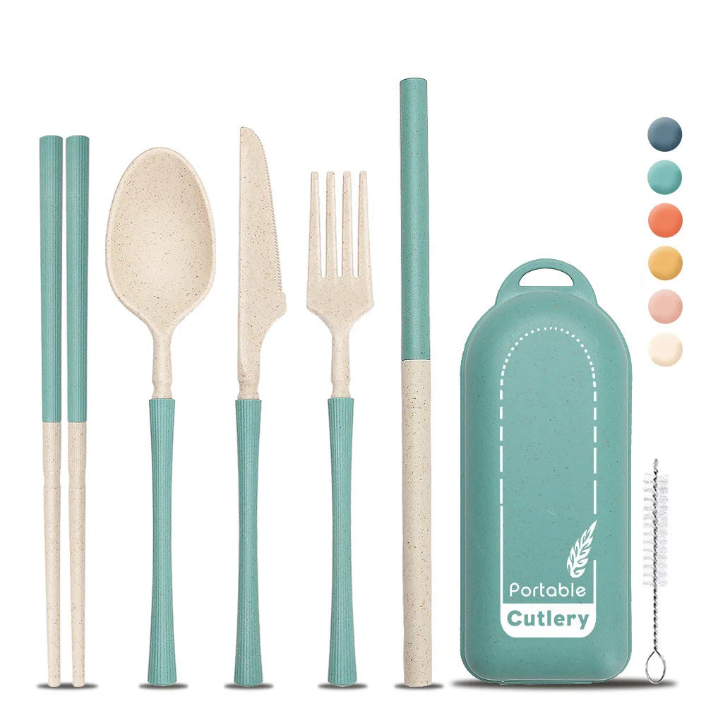 麥草餐具套裝 | 叉勺筷子一應俱全 立式設計超省空間
