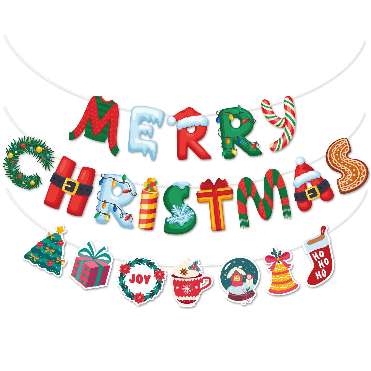 Christmas flag pull-up scene decoration supplies New Year party decoration pull-up flag banner wholesale (minimum batch of 10 pieces)