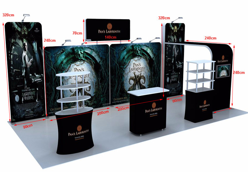 20ft Portable Trade Show Display Booth Kit with Tabletop Spotlight Custom Graphic Printed Backdrop Tension Fabric