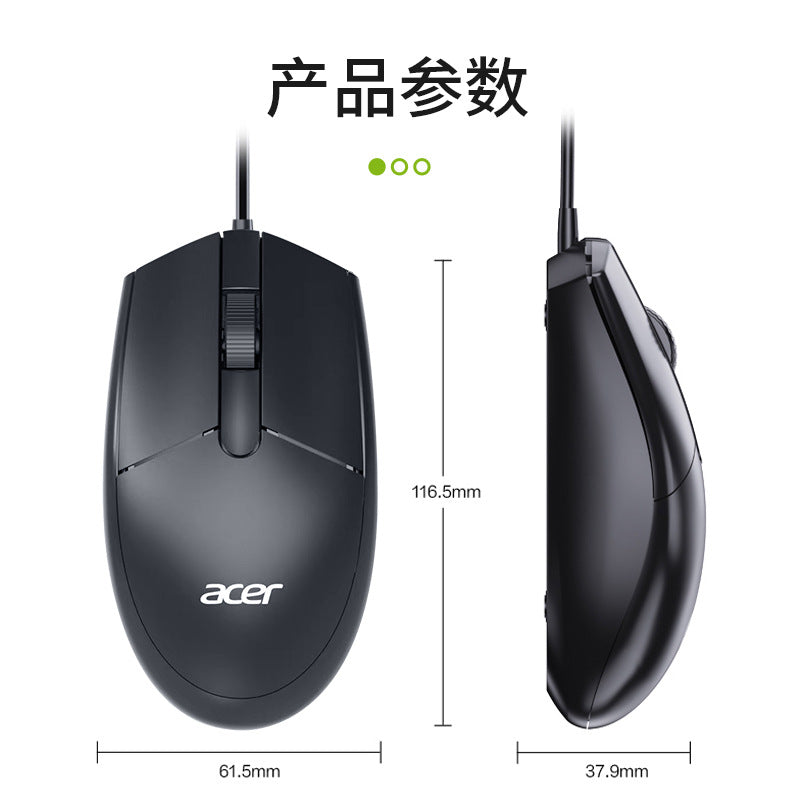 acer OMW910 有線辦公商務滑鼠,USB 接口,適用於筆記本、臺式機 數碼通配件 手提電腦滑鼠