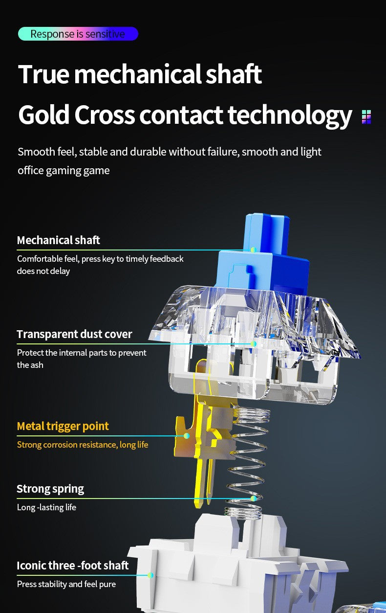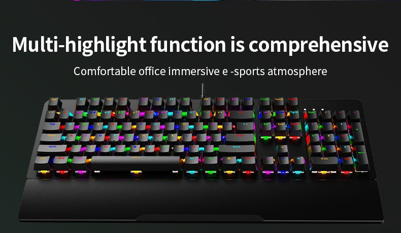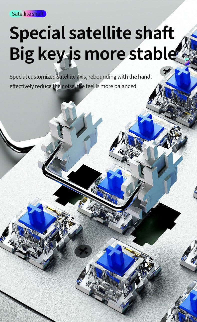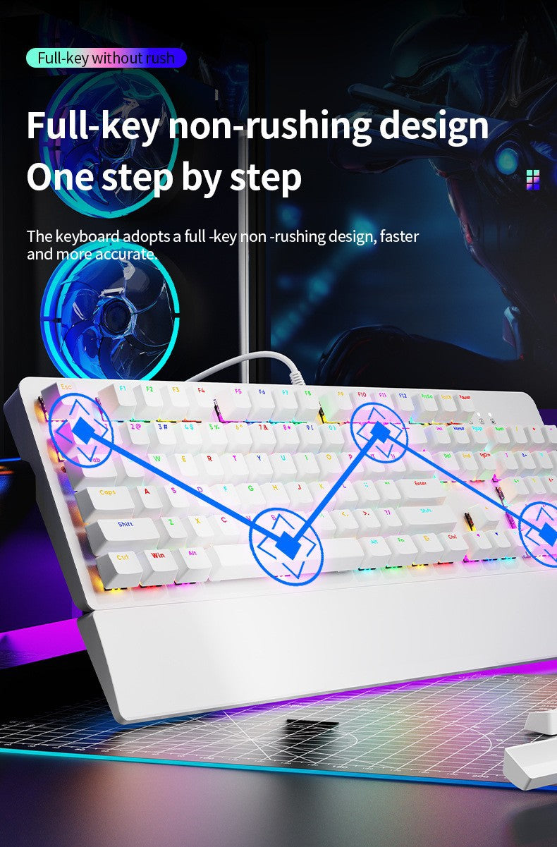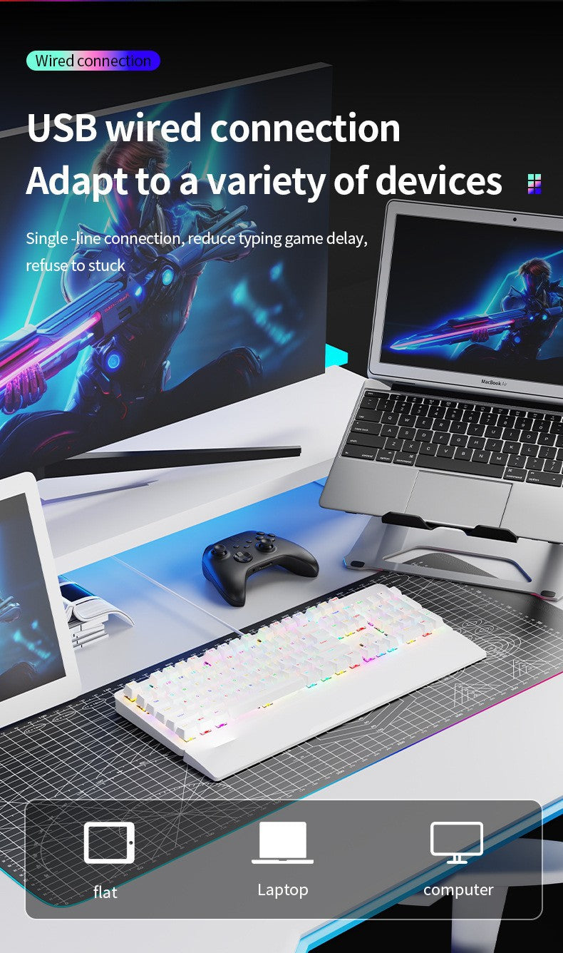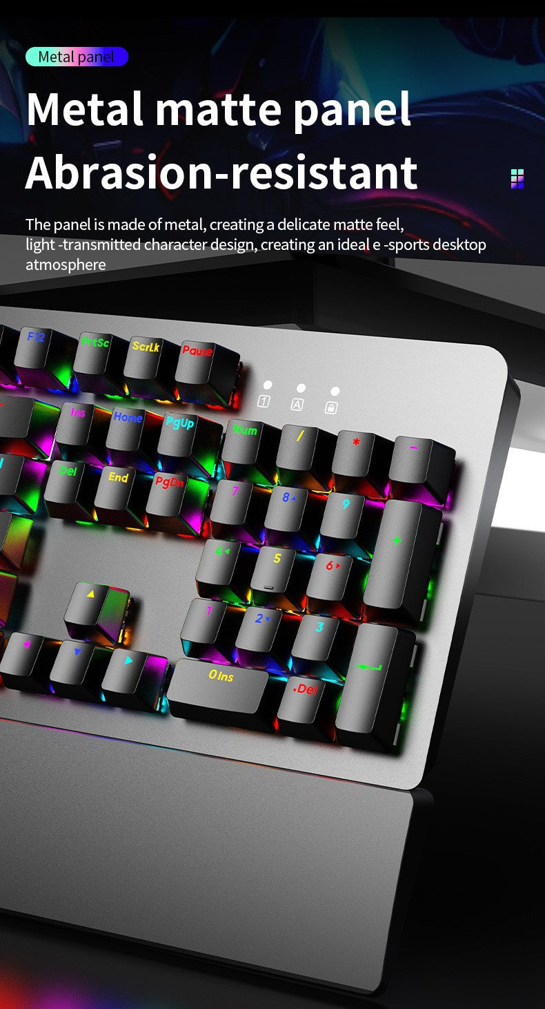 AK104 有線機械式鍵盤,可選配青軸、紅軸,具備 RGB 背光,適用於電競遊戲與辦公場景