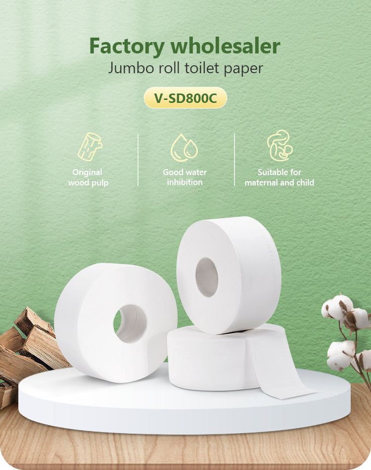 V-SD800C high quality biodegradable water-soluble environmentally friendly wood pulp large roll toilet paper