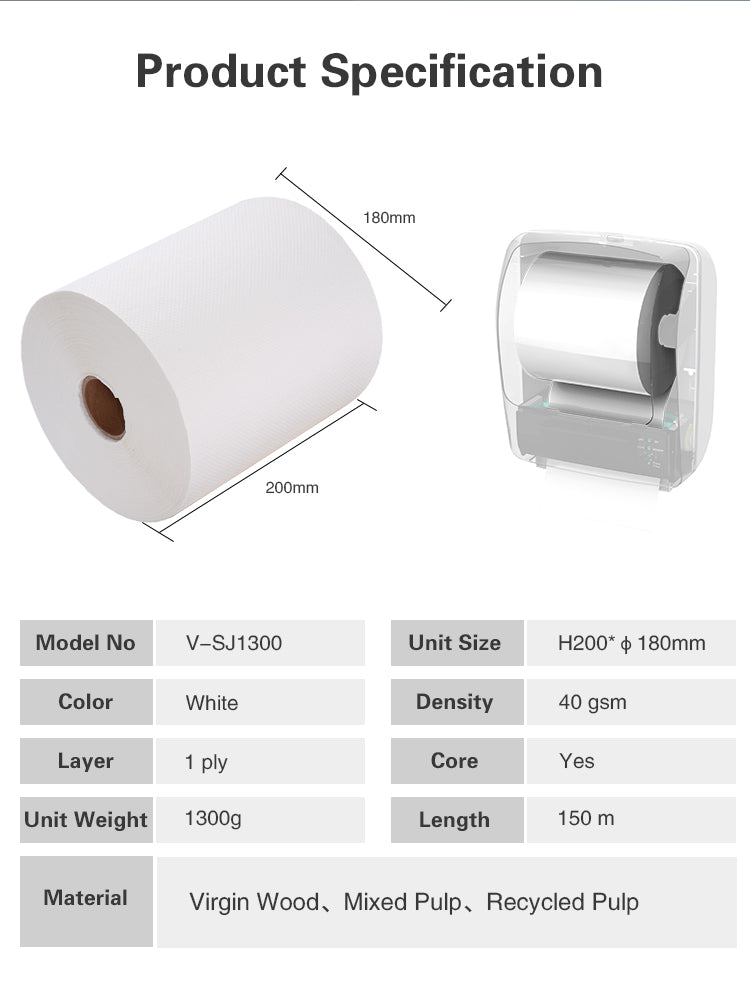 V-SJ1300 Organic Pure Wood Pulp Biodegradable Super Soft Scott Bamboo Large Roll Toilet Paper