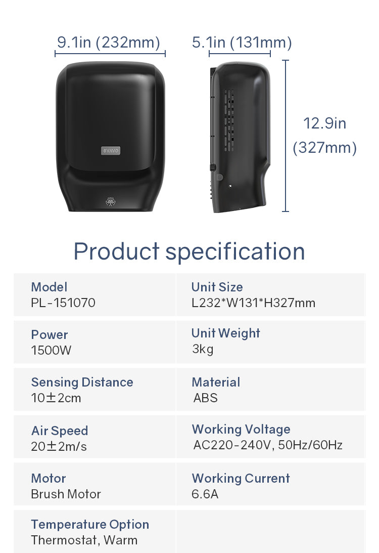 PL-151070 Economical portable bathroom touch-free wall-mounted automatic induction electric hand dryer