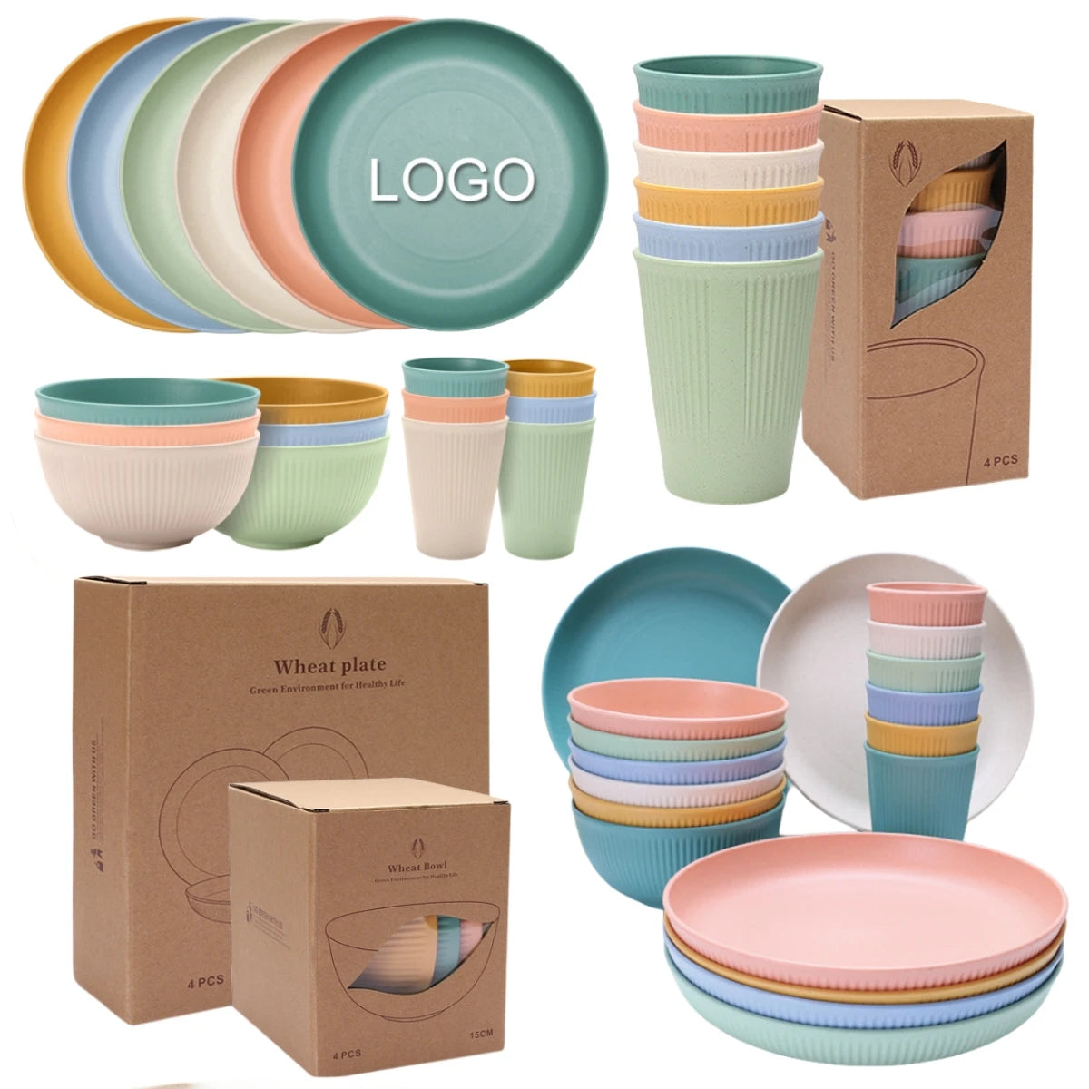 Modern 設計餐具套裝:小麥秸稈 + 塑料材質 1-8 人用