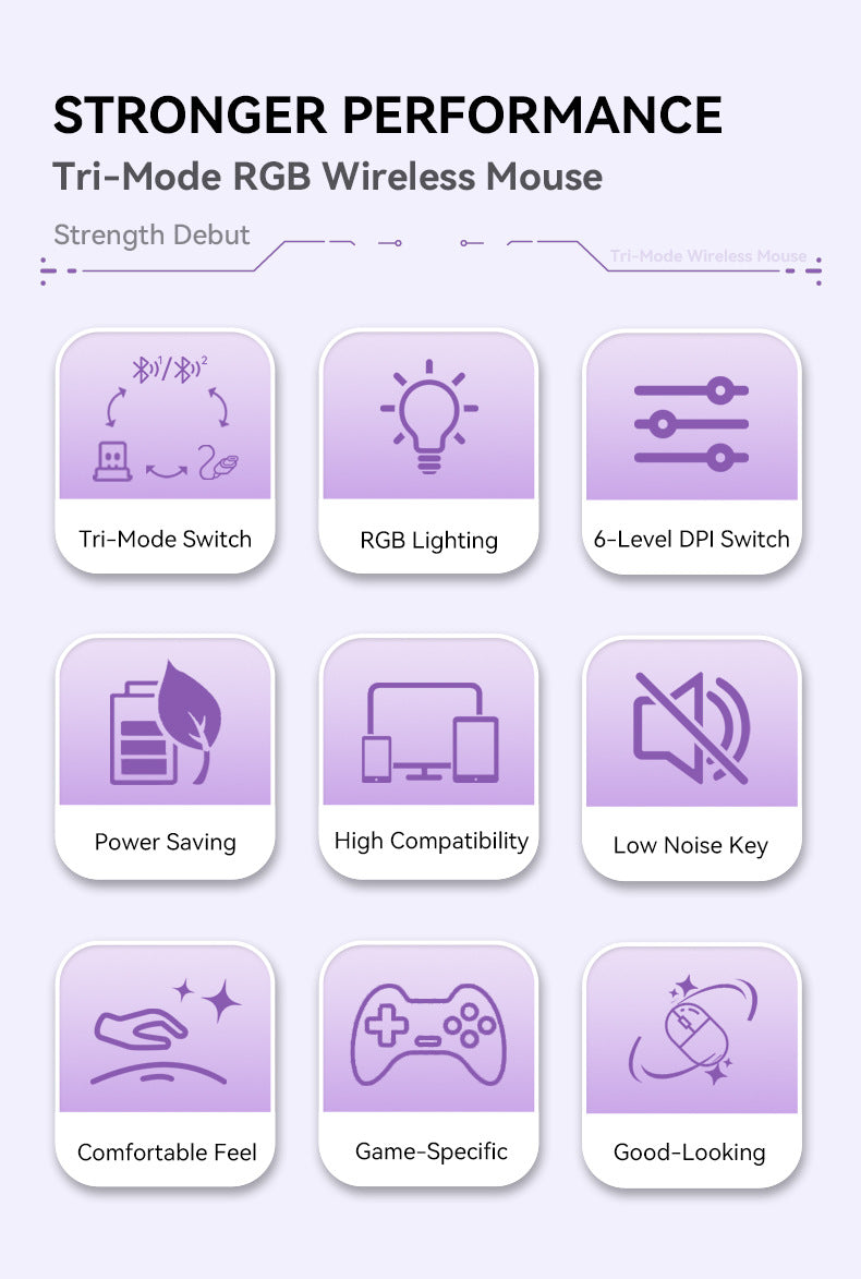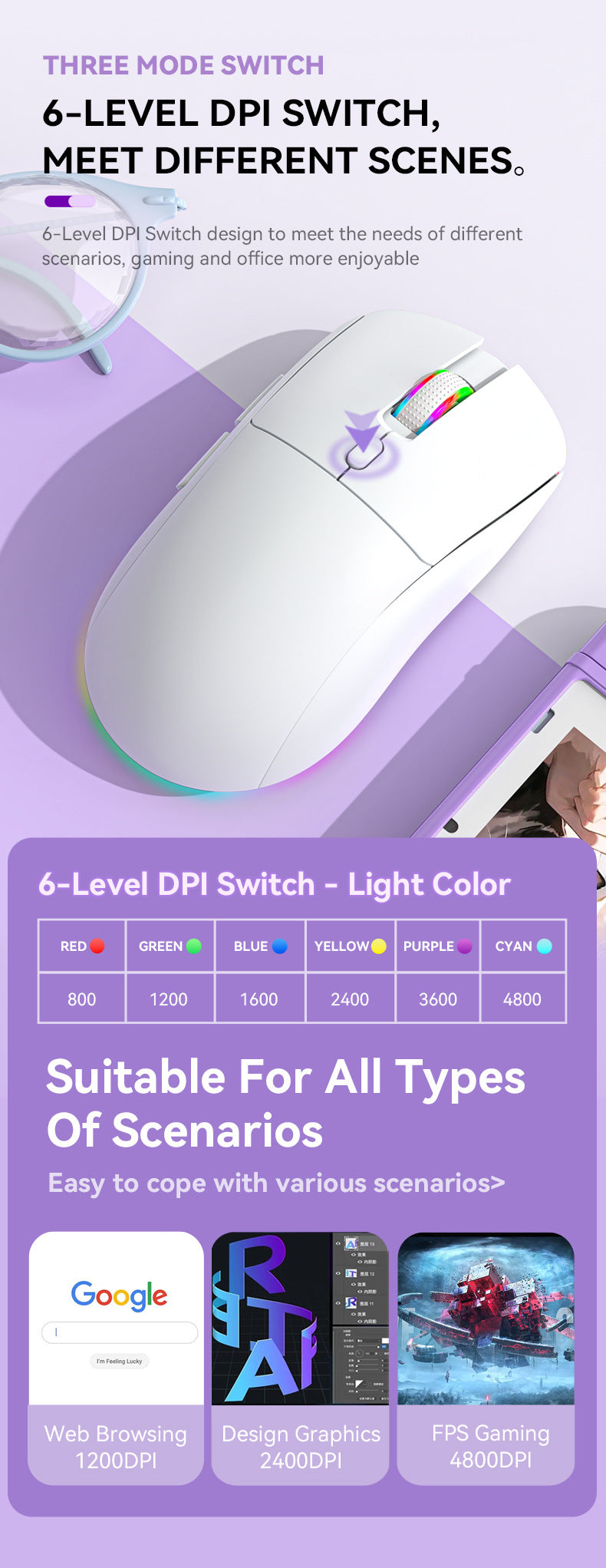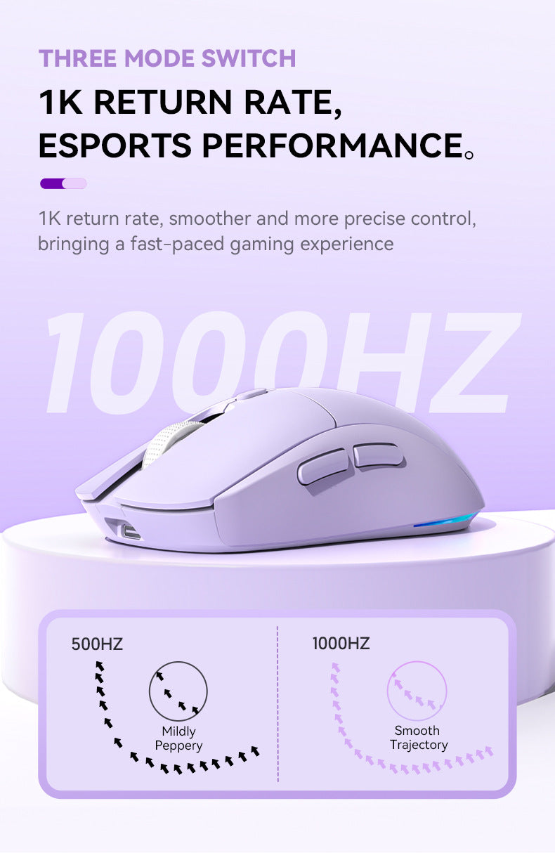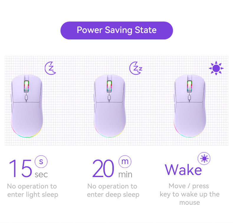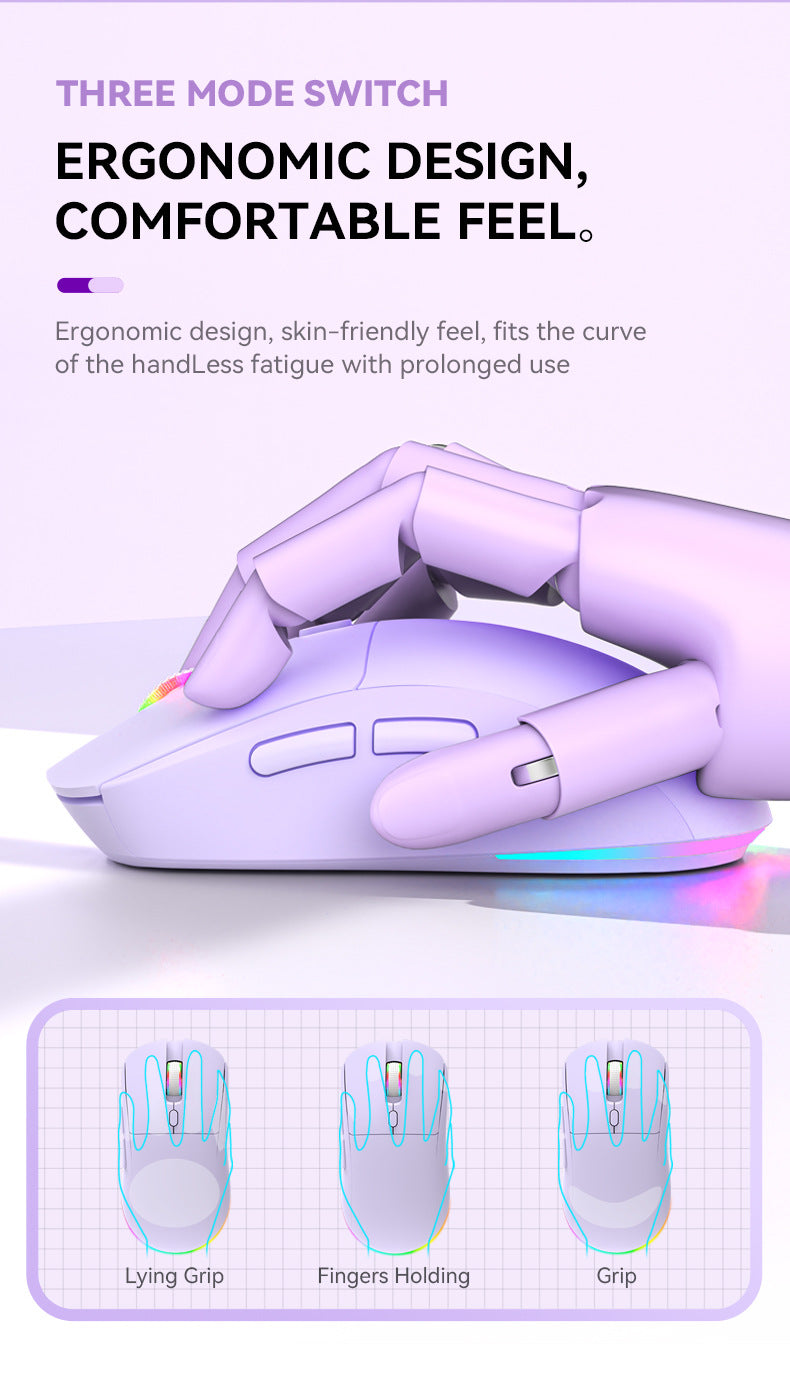 R518 無線藍牙三模遊戲滑鼠,支援 2.4g 無線、有線連接,具備無線充電功能,輕量設計,適用於電競與辦公場景