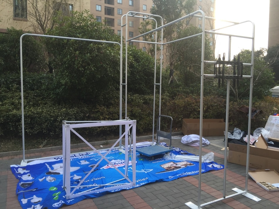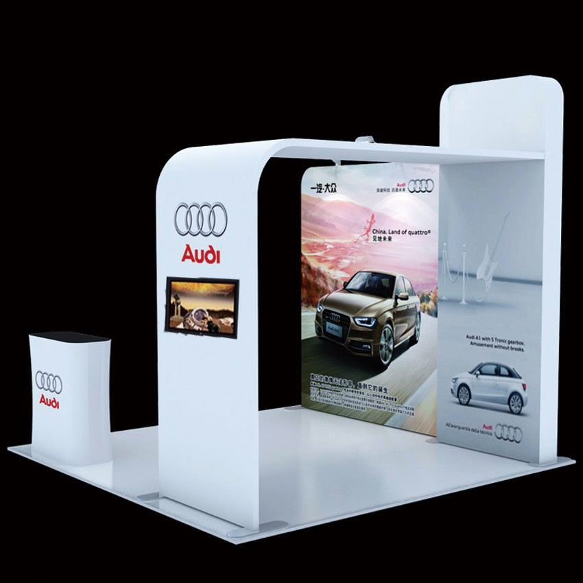 10ft 便攜式織物貿易展展示台 橫幅背景牆套件 帶櫃檯電視支架聚光燈
