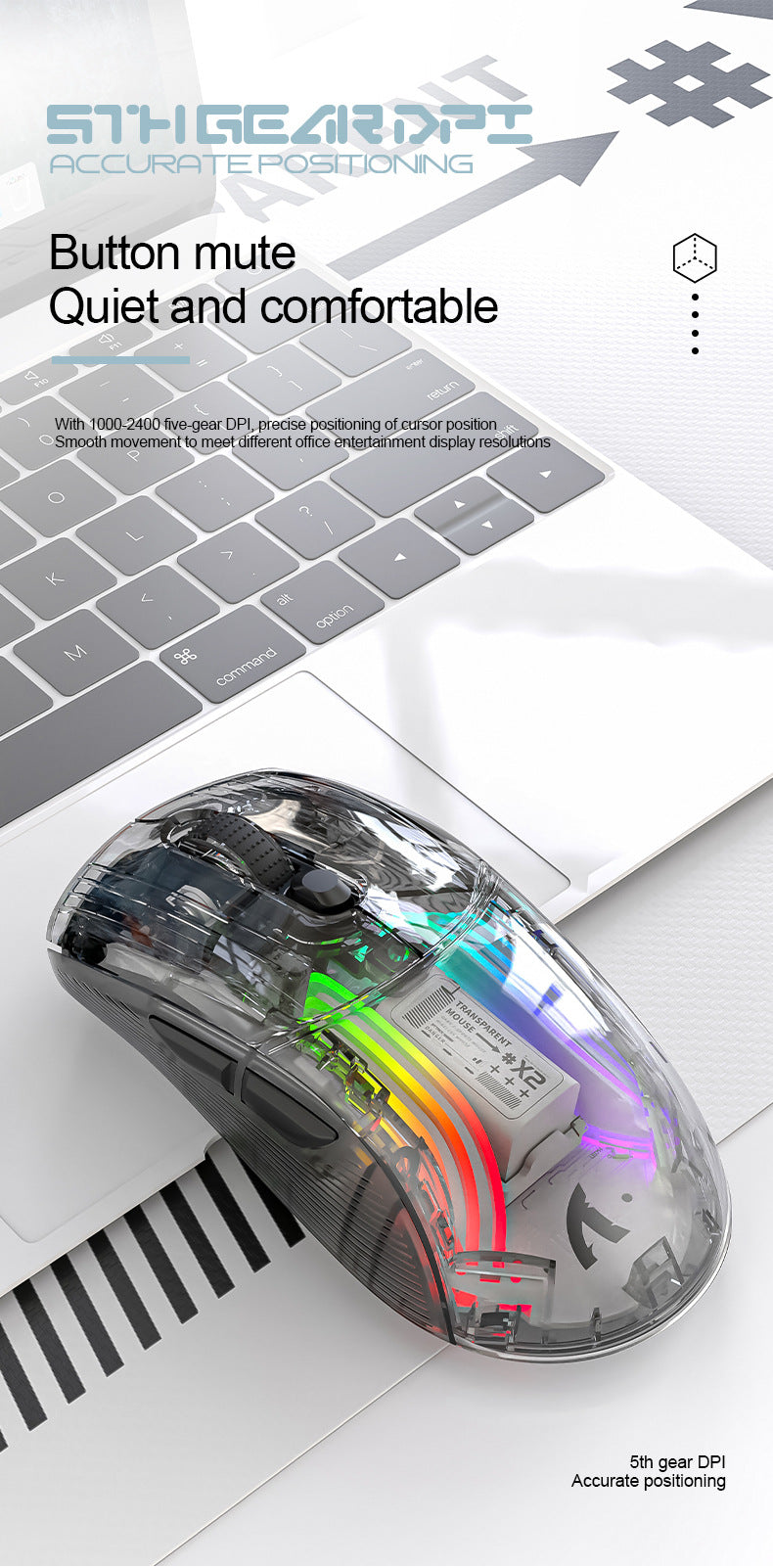 Attack Shark X2RGB 發光無線藍牙三模透明鼠標 遊戲電競鼠標
