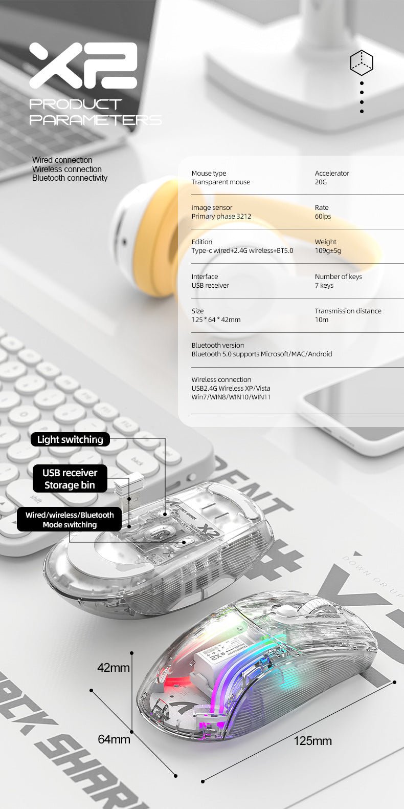 與電腦連接方式: 2.4G+藍牙