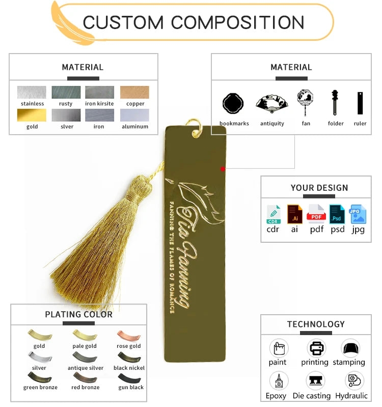 客製化金屬工藝品壓鑄鍍金 空白金屬書籤 附標誌書籤